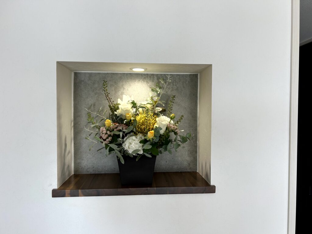 余ったスペースを無駄にせず、現場で残った部材を活用してニッチ棚を造作。