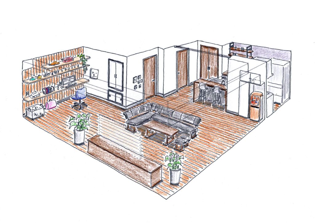 - とのご要望をもとに、全体の間取りや素材選定までトータルでプランニングさせていただきました。
